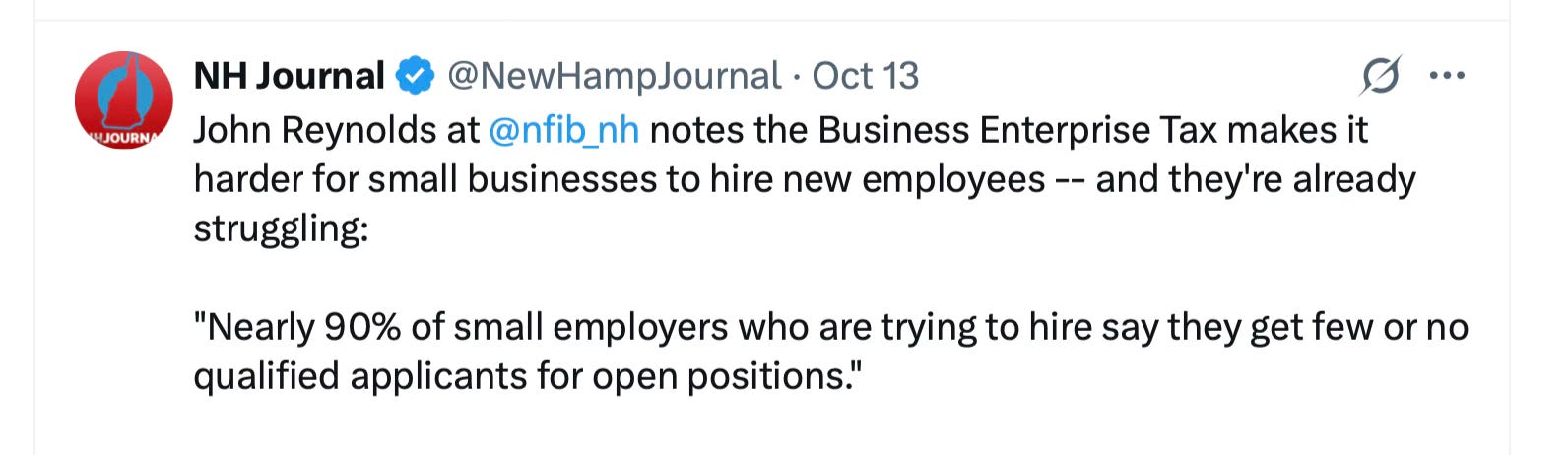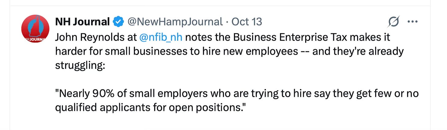 In 2015, New Hampshire’s GDP was .43% of the national economy. In 2024, New Hampshire’s share had fallen to .399%. In other words, over the period that business-taxes were being cut in New Hampshire, the economies of the other States, in the aggregate, grew faster than New Hampshire’s.